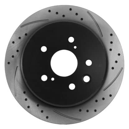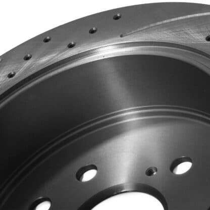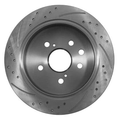 Drilled and grooved to aid in heat dispersion reducing brake fade