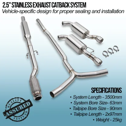- 2.5″ bore throughout with 3.5″ tailpipes