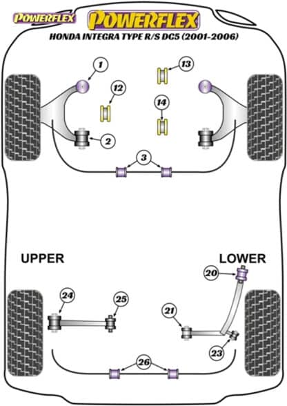 REPLACES OEM BUSH PART NUMBERS: 51392-S5A-004 (Bush) / 51350-S5T-Z01 / 51360-S5T-Z01 (Arms) /